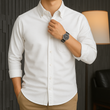 π Executive Design: Features a clean-cut silhouette with a classic spread collar and precision-aligned buttons for a sharp, tailored look.